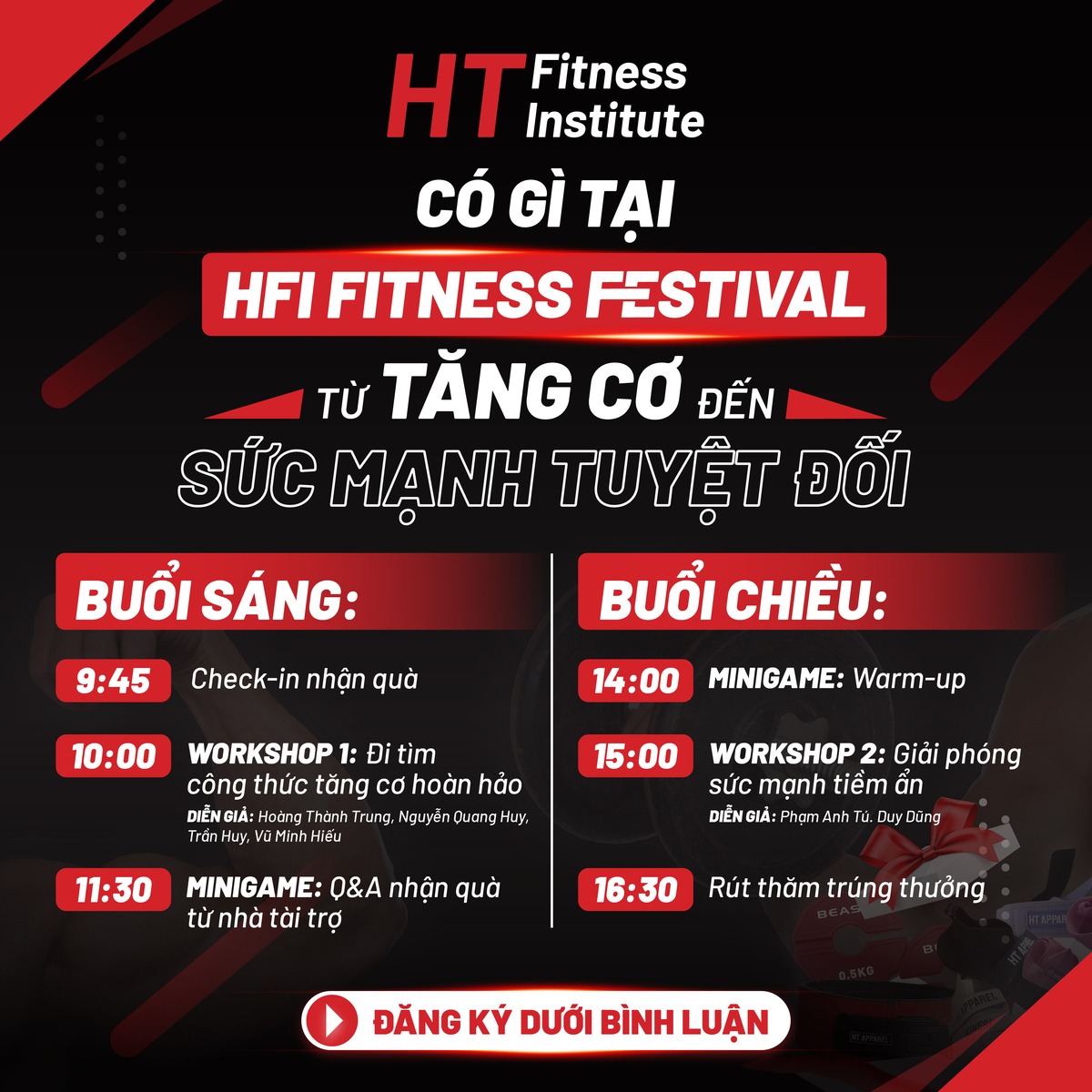 Với kinh nghiệm dạn dày có được sau nhiều năm tích lũy cùng thành tích thi đấu xuất sắc, những chia sẻ từ VĐV Vũ Minh Hiếu chắc chắn cũng sẽ rất có ích cho tất cả những bạn tham gia HFF cũng như Workshop Đi Tìm Công Thức Tăng Cơ Hoàn Hảo.