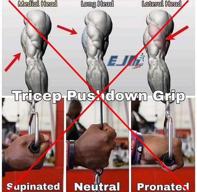 Tìm cách tác động vào các đầu khác nhau của Triceps Brachii (tay sau) bằng cách thay đổi tay nắm